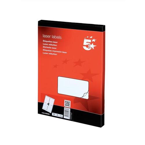 5 Star Office Multipurpose Labels Laser 4 per Sheet 139x99.1mm White [400 Labels]