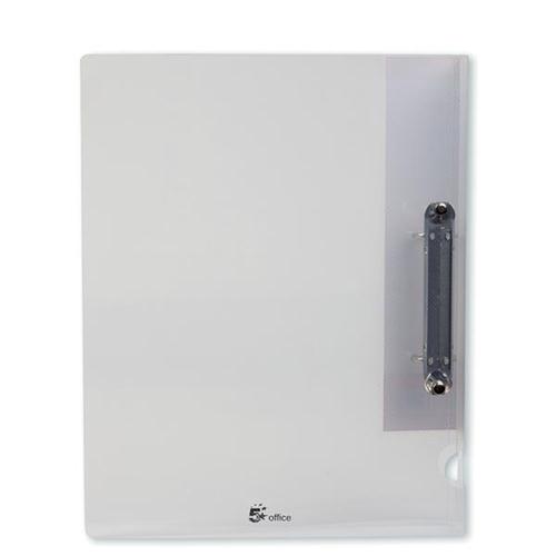 5 Star (A4) Office Ring Binder 2 O-ring Polypropylene (Clear) Pack of 10. The Plastic Ring Binder File has a 25mm capacity and a label holder on the spine. The hard wearing polypropylene cover is perfect for durability and the ring binder mean that notes, memos and work is kept safe whether in work or at home.